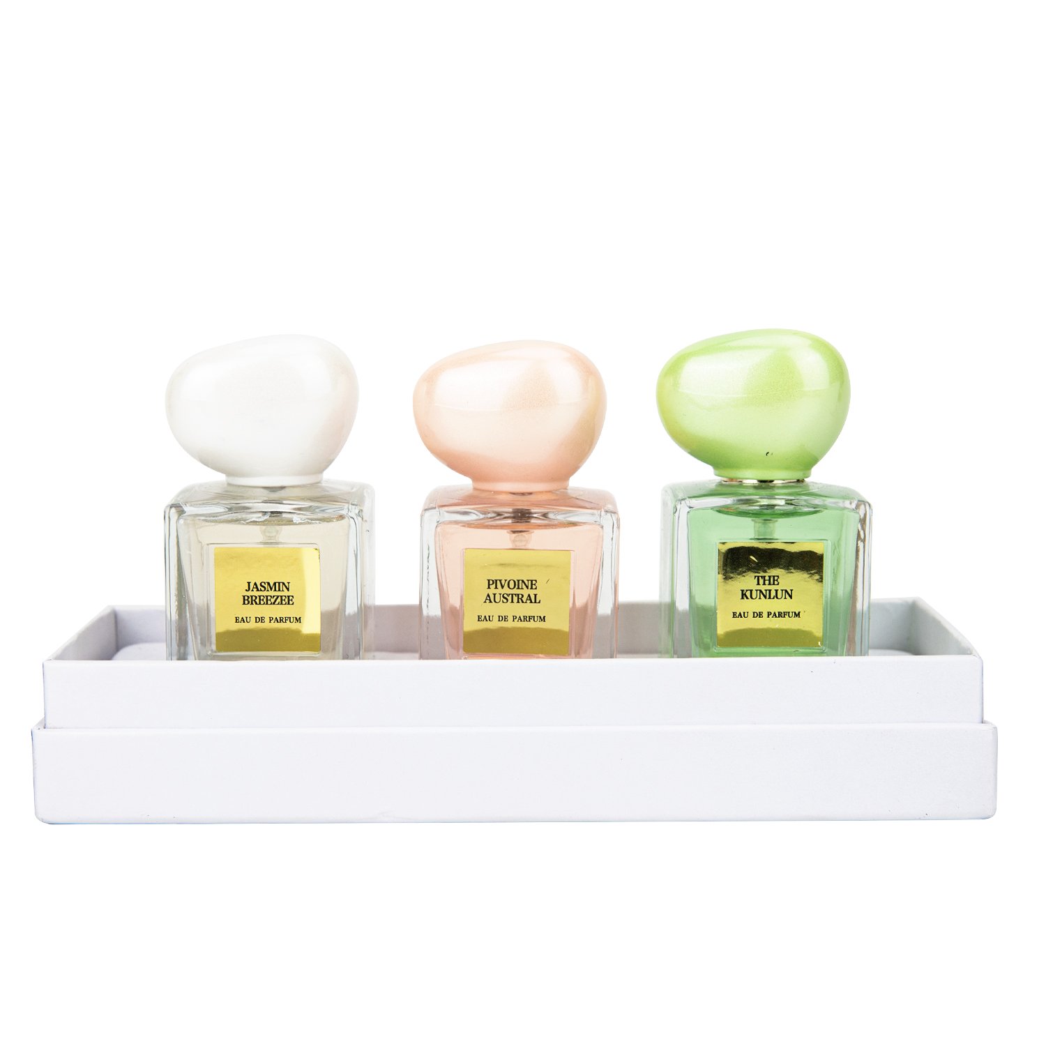 Este exclusivo set reúne tres perfumes con notas suaves y frescas, ideales para acompañarte durante el día con un aroma ligero que transmite sensación de limpieza, frescura y bienestar. Sus fragancias están diseñadas para realzar tu presencia de manera natural, dejando una estela agradable y delicada en la piel.
